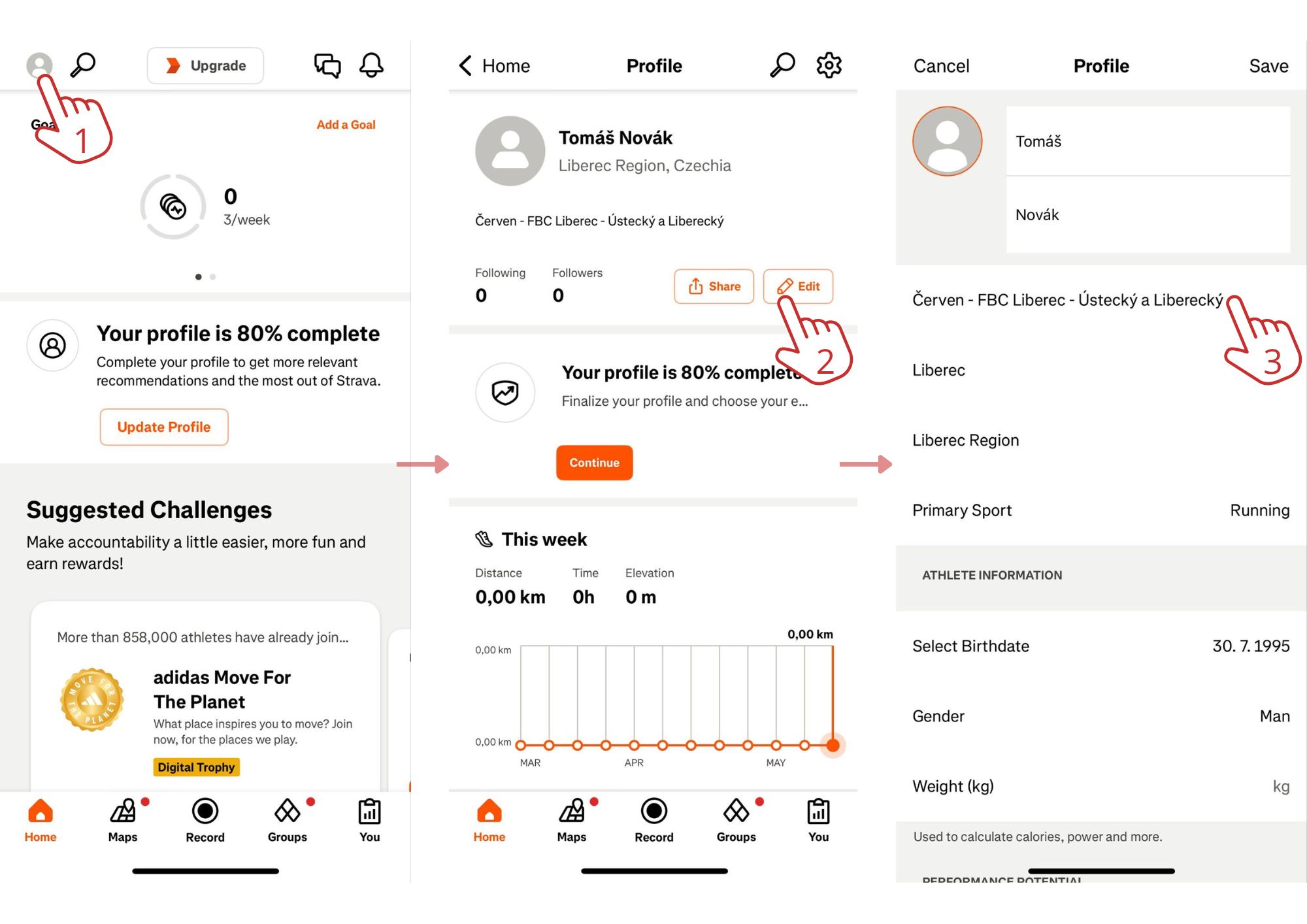 2. Vytvořit si v aplikaci veřejný profil (pokud budeš mít profil nastavený jako soukromý, nebudou se moci Tvoje kilometry započítat)