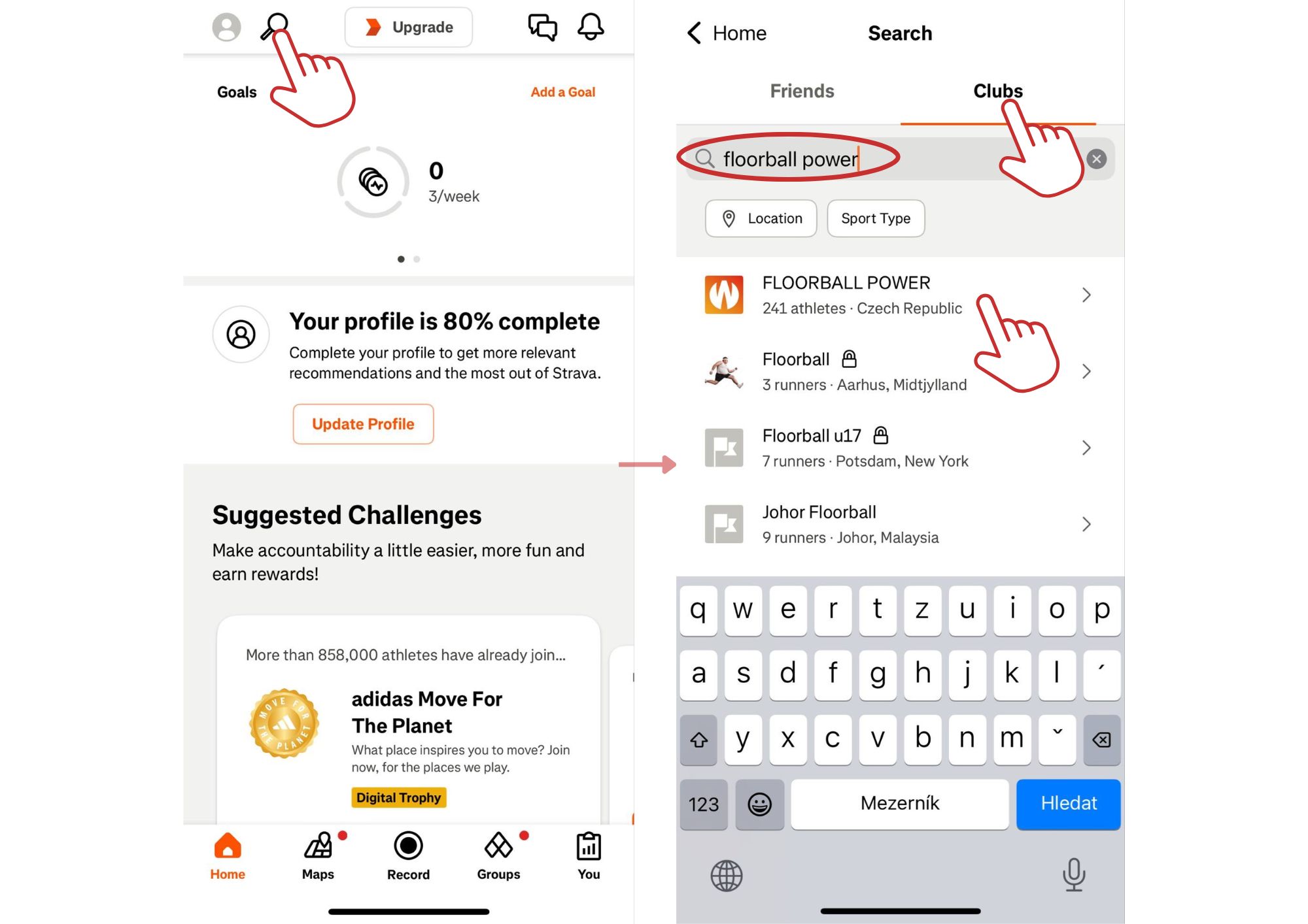 4. Připojit se v aplikaci do klubu FLOORBALL POWER