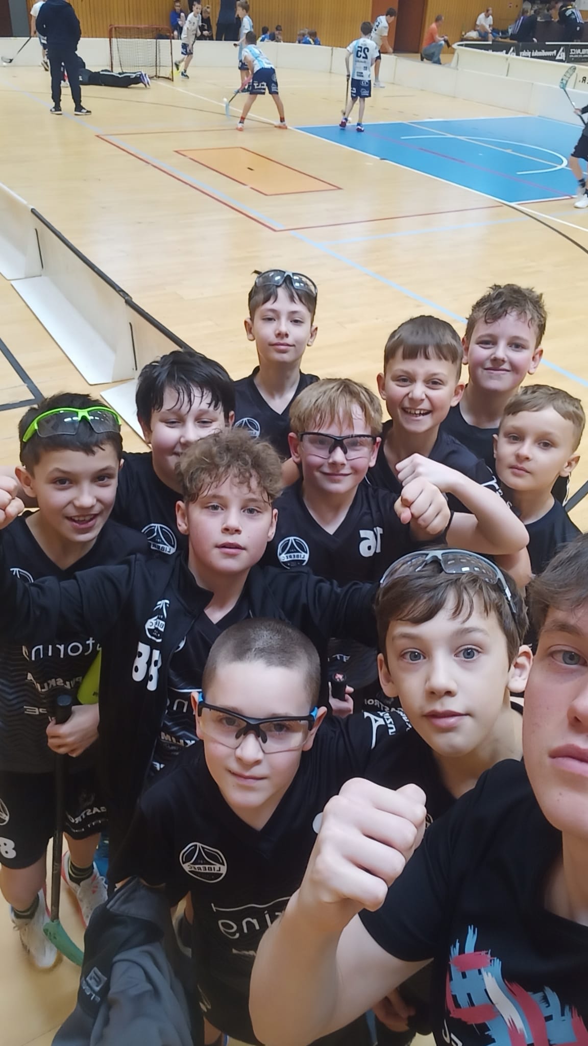 Závěrem je třeba dodat, že kategorie starších žáků nebyla jedinou kategorií, která trávila víkend na hale. Do České Lípy vyrazily hned 3 týmy Elévů. Na jednom z hřišť absolvoval tým Black rovněž liberecké derby s Pantery, kdy bohužel zkopíroval výsledek starších žáků. V dalších zápasech se týmu dařilo a ukázali soupeřům svoje přednosti. I týmy Blue a White úspěšně hájily barvy našeho klubu. Kluci i rodiče si herní sobotu velmi užili.